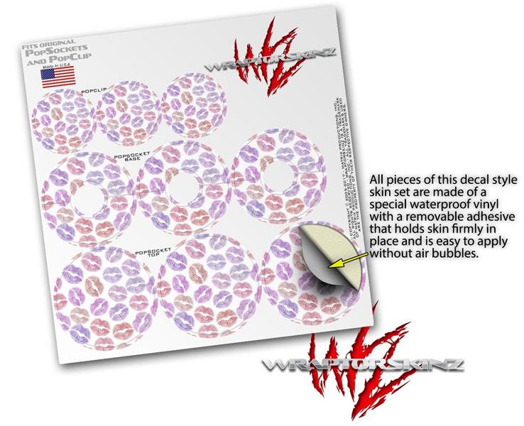 Decal Style Vinyl Skin Wrap 3 Pack for PopSockets Pink Purple Lips (POPSOCKET NOT INCLUDED)