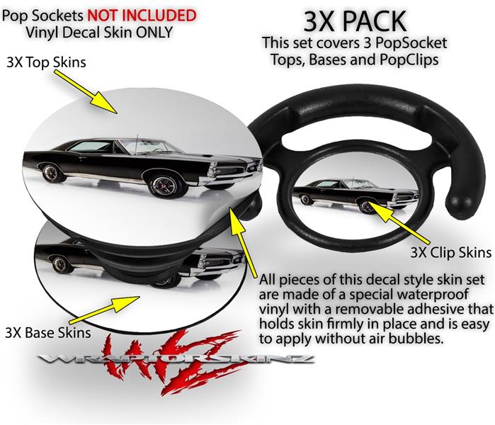 Decal Style Vinyl Skin Wrap 3 Pack for PopSockets 1967 Black Pontiac GTO 3786 (POPSOCKET NOT INCLUDED)