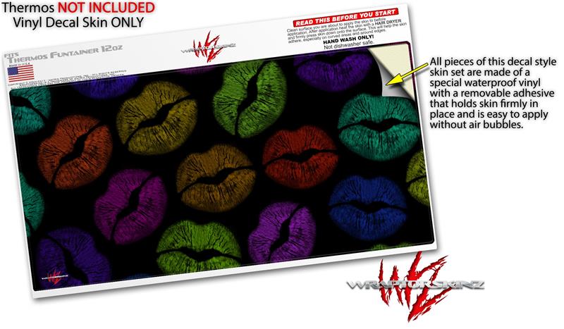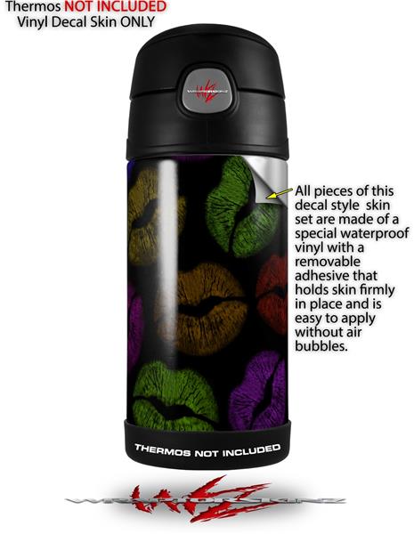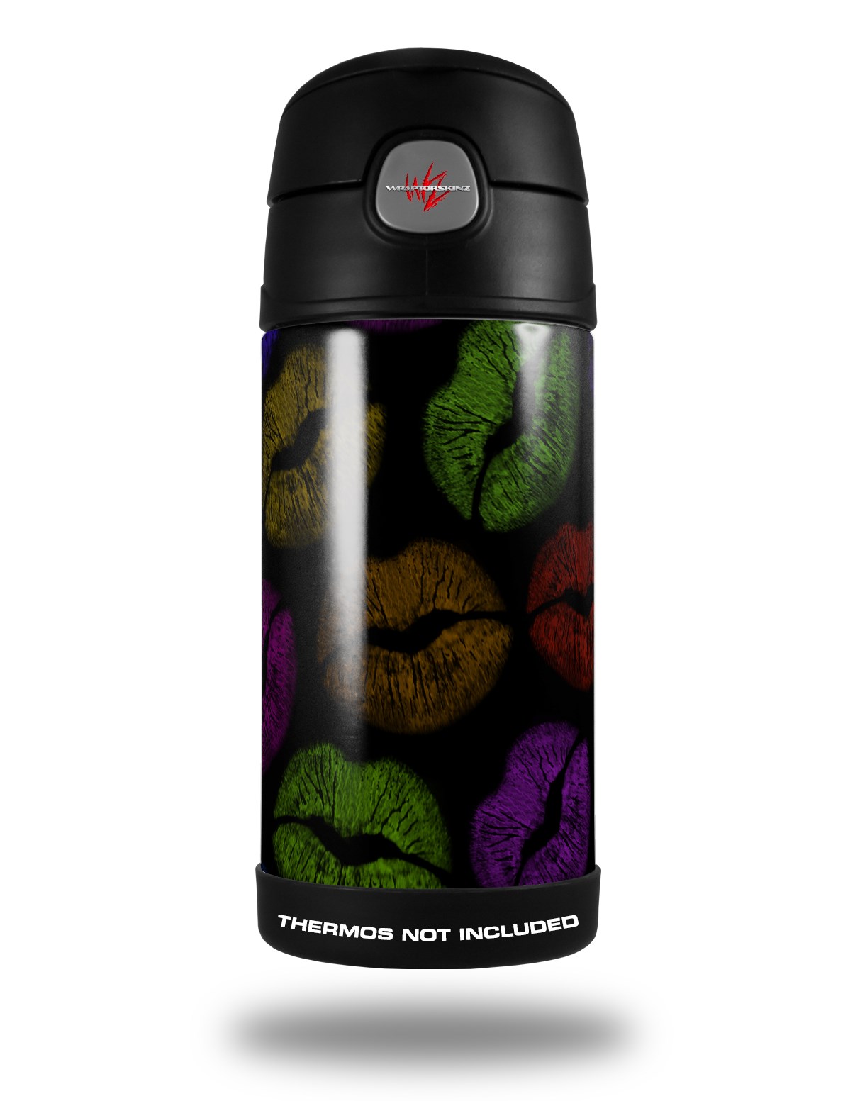 Skin Decal Wrap for Thermos Funtainer 12oz Bottle Rainbow Lips Black (BOTTLE NOT INCLUDED) by WraptorSkinz