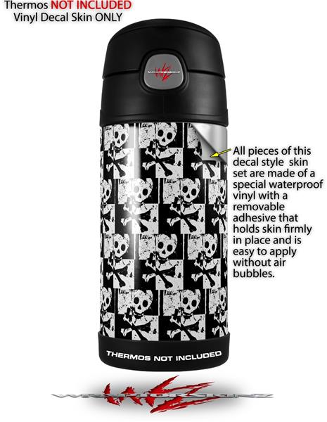 Skin Decal Wrap for Thermos Funtainer 12oz Bottle Skull Checker (BOTTLE NOT INCLUDED) by WraptorSkinz