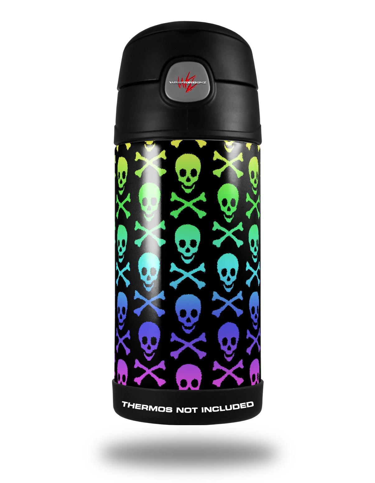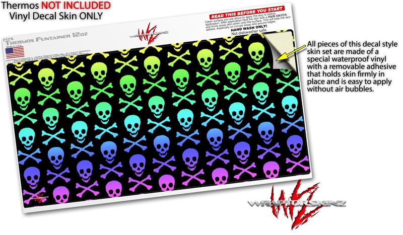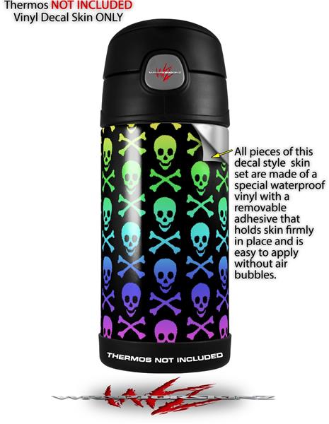 Skin Decal Wrap for Thermos Funtainer 12oz Bottle Skull and Crossbones Rainbow (BOTTLE NOT INCLUDED) by WraptorSkinz