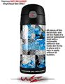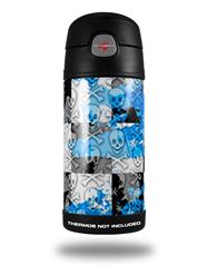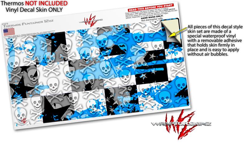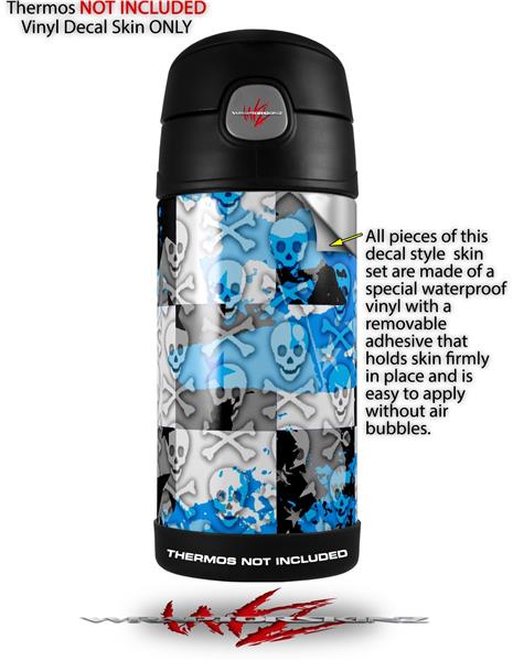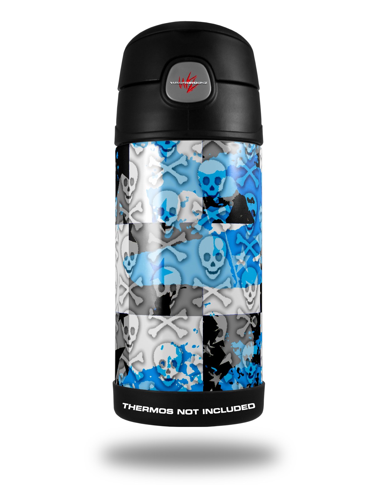 Skin Decal Wrap for Thermos Funtainer 12oz Bottle Checker Skull Splatter Blue (BOTTLE NOT INCLUDED) by WraptorSkinz