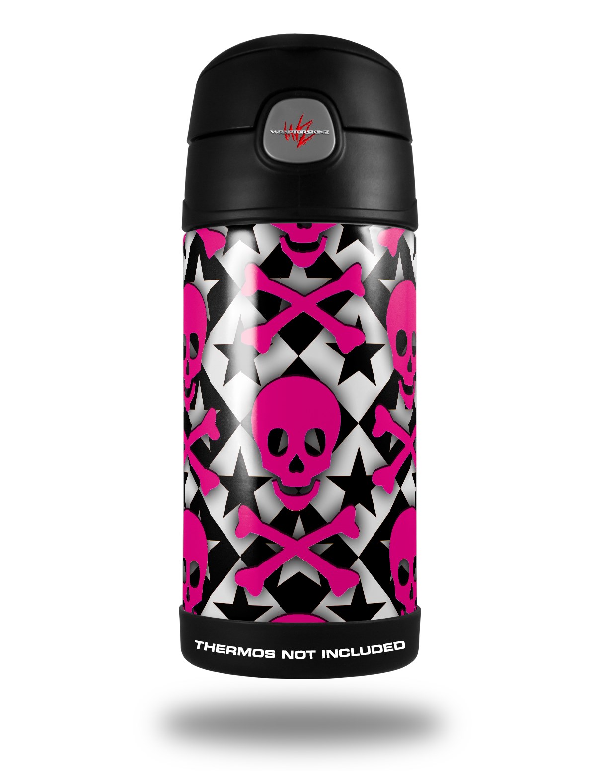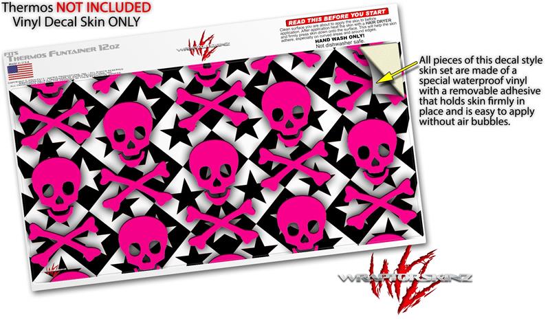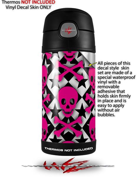 Skin Decal Wrap for Thermos Funtainer 12oz Bottle Pink Skulls and Stars (BOTTLE NOT INCLUDED) by WraptorSkinz