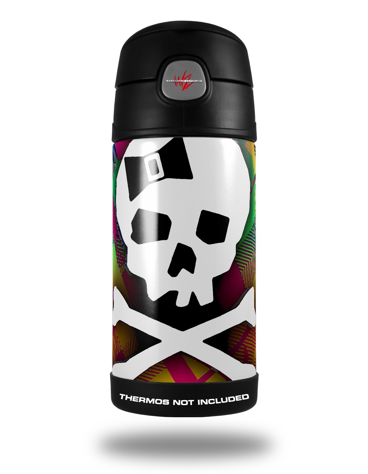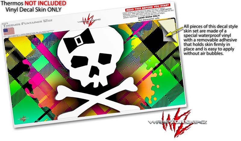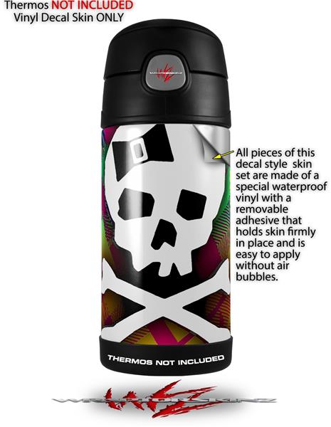 Skin Decal Wrap for Thermos Funtainer 12oz Bottle Rainbow Plaid Skull (BOTTLE NOT INCLUDED) by WraptorSkinz