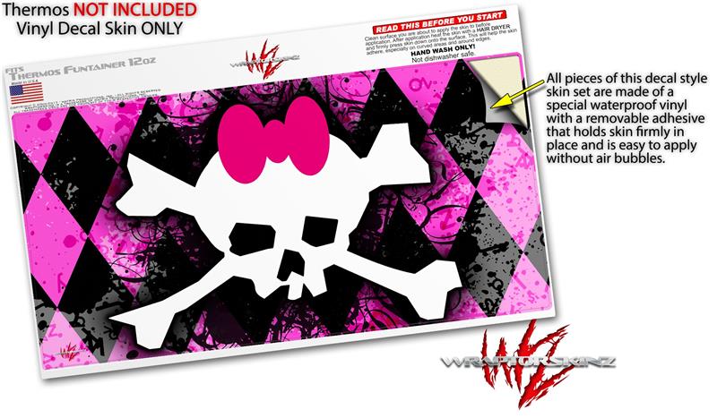 Skin Decal Wrap for Thermos Funtainer 12oz Bottle Pink Diamond Skull (BOTTLE NOT INCLUDED) by WraptorSkinz
