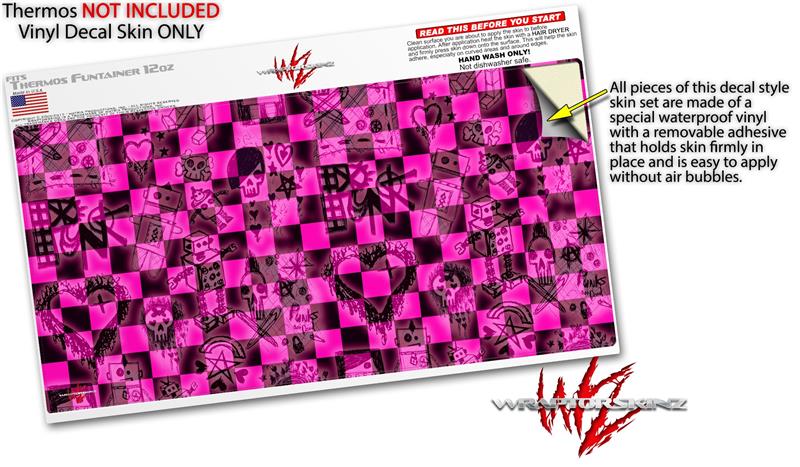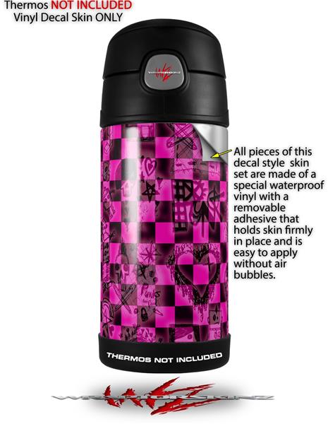 Skin Decal Wrap for Thermos Funtainer 12oz Bottle Pink Checkerboard Sketches (BOTTLE NOT INCLUDED) by WraptorSkinz