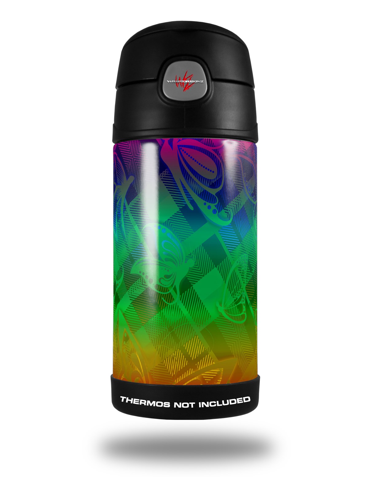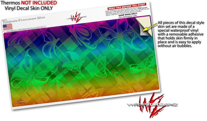 Skin Decal Wrap for Thermos Funtainer 12oz Bottle Rainbow Butterflies (BOTTLE NOT INCLUDED) by WraptorSkinz
