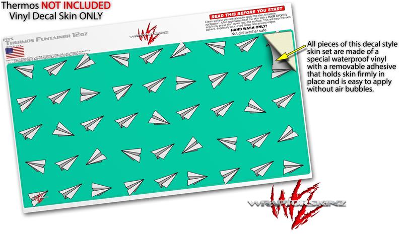 Skin Decal Wrap for Thermos Funtainer 12oz Bottle Paper Planes Turquoise (BOTTLE NOT INCLUDED) by WraptorSkinz