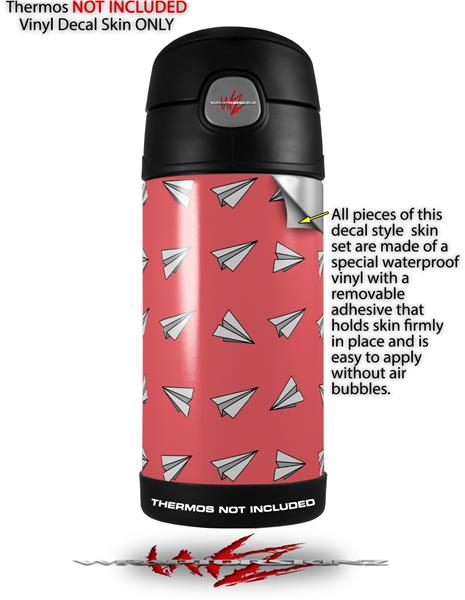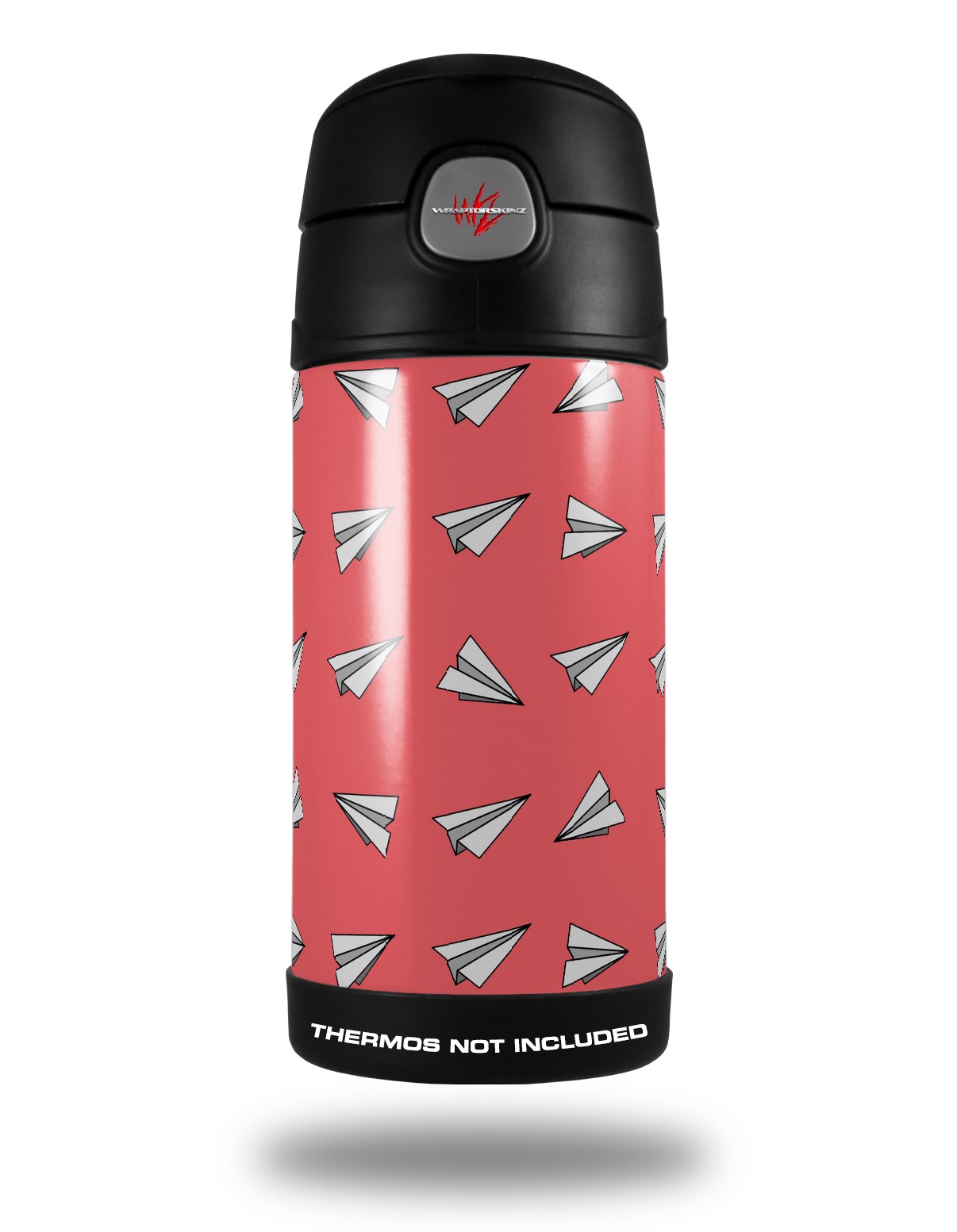 Skin Decal Wrap for Thermos Funtainer 12oz Bottle Paper Planes Coral (BOTTLE NOT INCLUDED) by WraptorSkinz