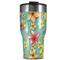 WraptorSkinz Skin Wrap compatible with 2017 and newer RTIC Tumblers 30oz Beach Flowers Blue Medium (TUMBLER NOT INCLUDED)