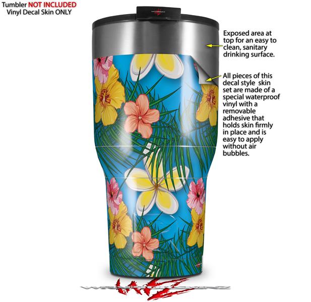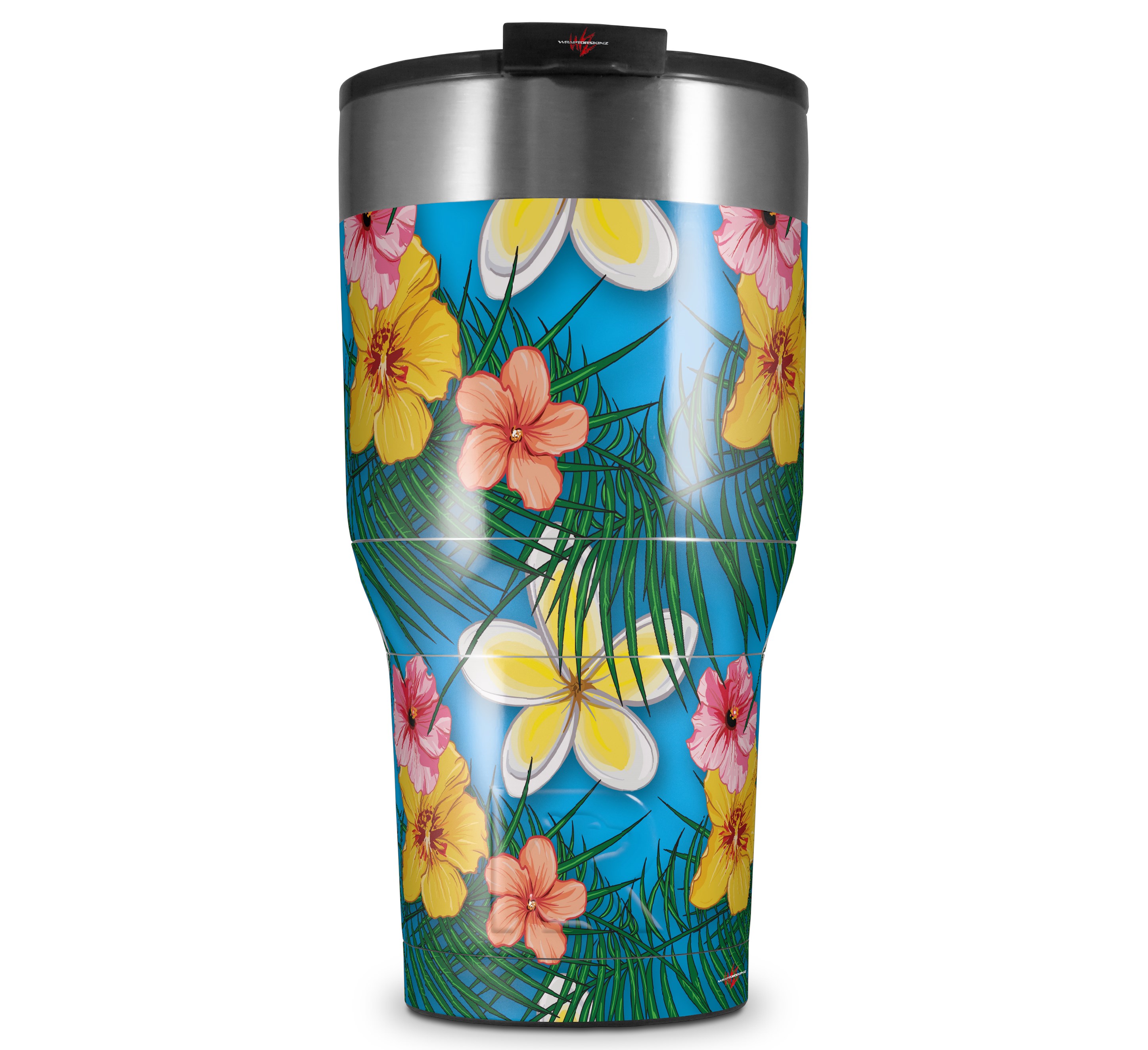 WraptorSkinz Skin Wrap compatible with 2017 and newer RTIC Tumblers 30oz Beach Flowers 02 Blue Medium (TUMBLER NOT INCLUDED)