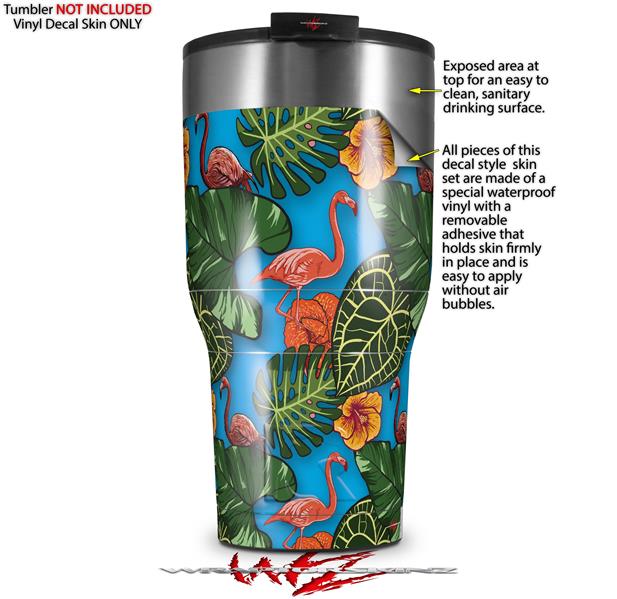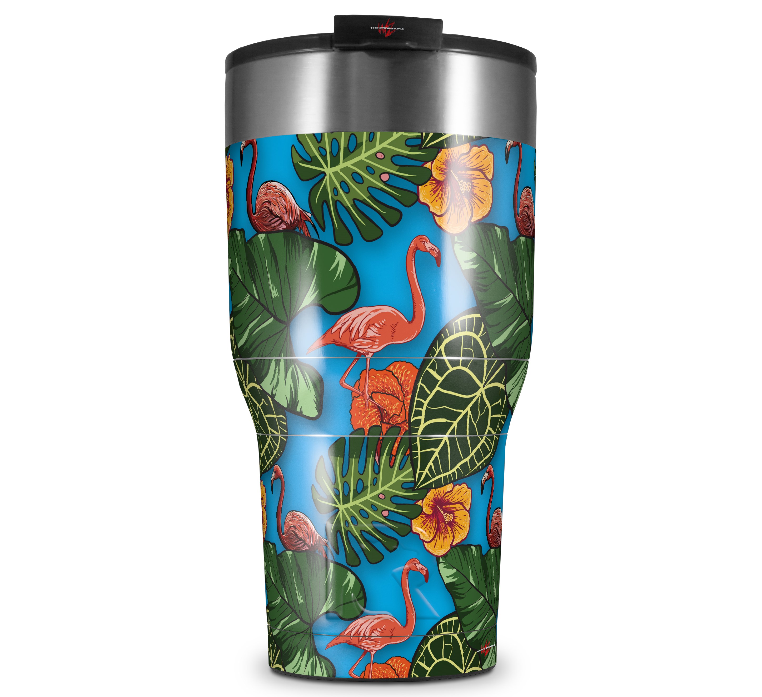 WraptorSkinz Skin Wrap compatible with 2017 and newer RTIC Tumblers 30oz Famingos and Flowers Blue Medium (TUMBLER NOT INCLUDED)