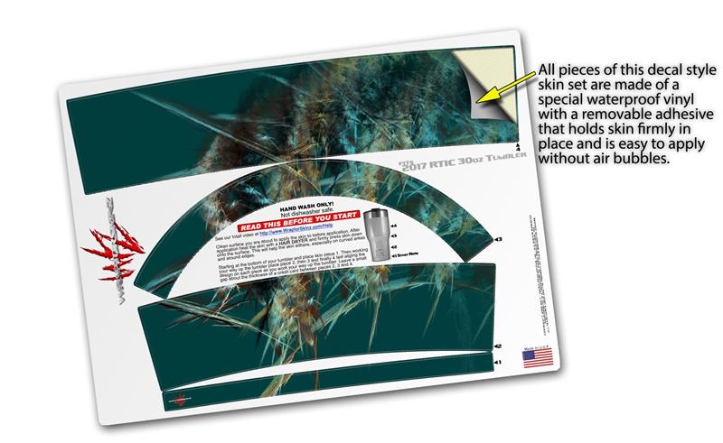 WraptorSkinz® skin wraps for 2017 RTIC Tumblers are printed using superb photo quality designs and vibrant colors printed with special fade resistant inks that last even in direct sun for years. WraptorSkinz® are a composite of two layers of commercial grade materials. The bottom layer is a soft, flexible vinyl with a special removable adhesive that is easily positioned, applied without air bubbles. Next we print the bottom layer with UV protected, fade resistant inks that deliver superb photo quality designs in vibrant colors. Finally we bond a professional grade laminate over the entire skin adding a glossy protective finish.