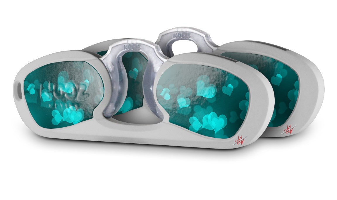 Decal Style Vinyl Skin Wrap 2 Pack for Nooz Glasses Rectangle Case Bokeh Hearts Neon Teal (NOOZ NOT INCLUDED) by WraptorSkinz