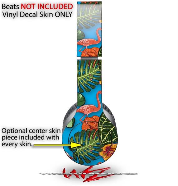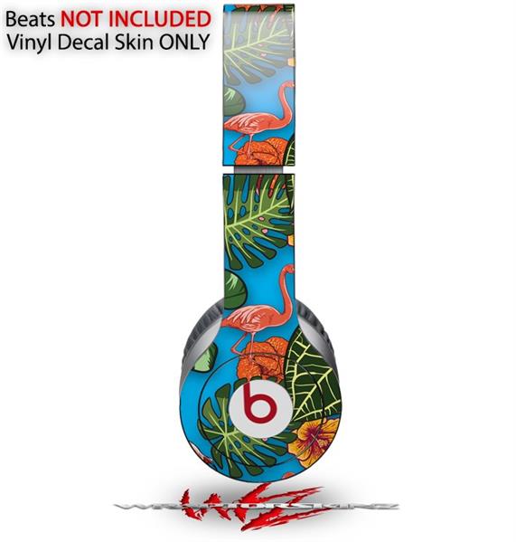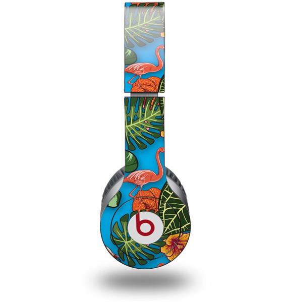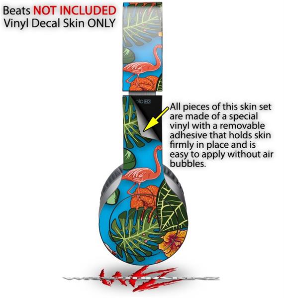 WraptorSkinz Skin Decal Wrap compatible with Beats Solo HD (Original) Famingos and Flowers Blue Medium (HEADPHONES NOT INCLUDED)
