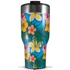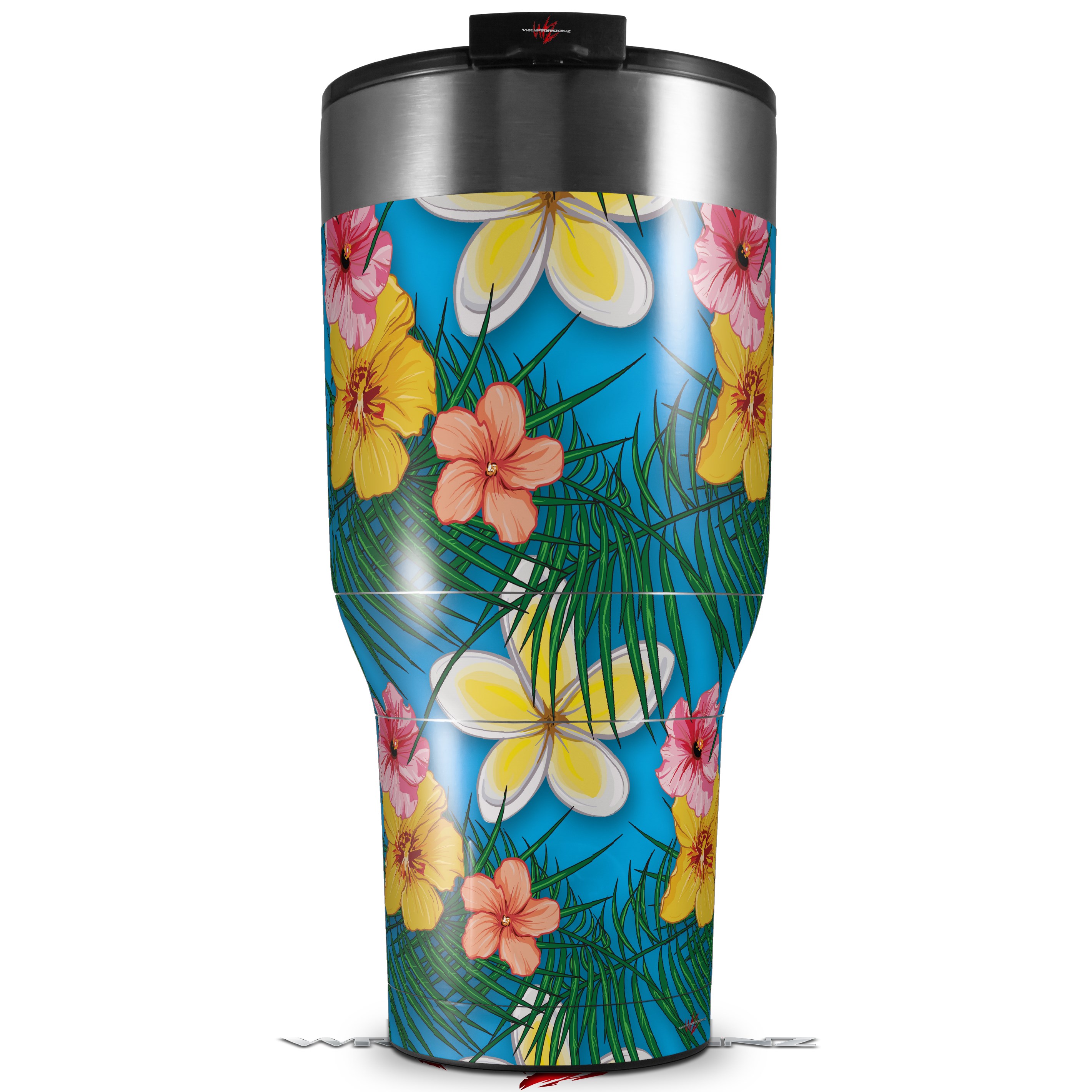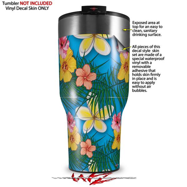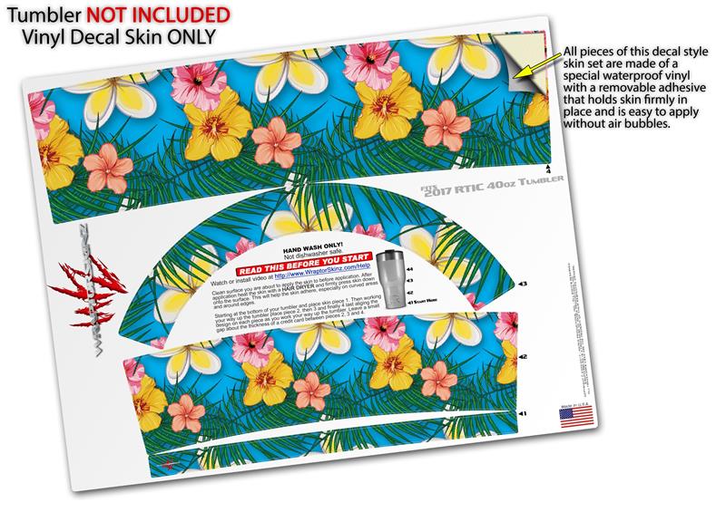 Skin Wrap Decal for 2017 RTIC Tumblers 40oz Beach Flowers 02 Blue Medium (TUMBLER NOT INCLUDED)