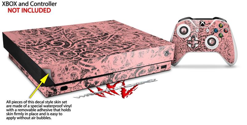 Skin Wrap for XBOX One X Console and Controller Folder Doodles Pink
