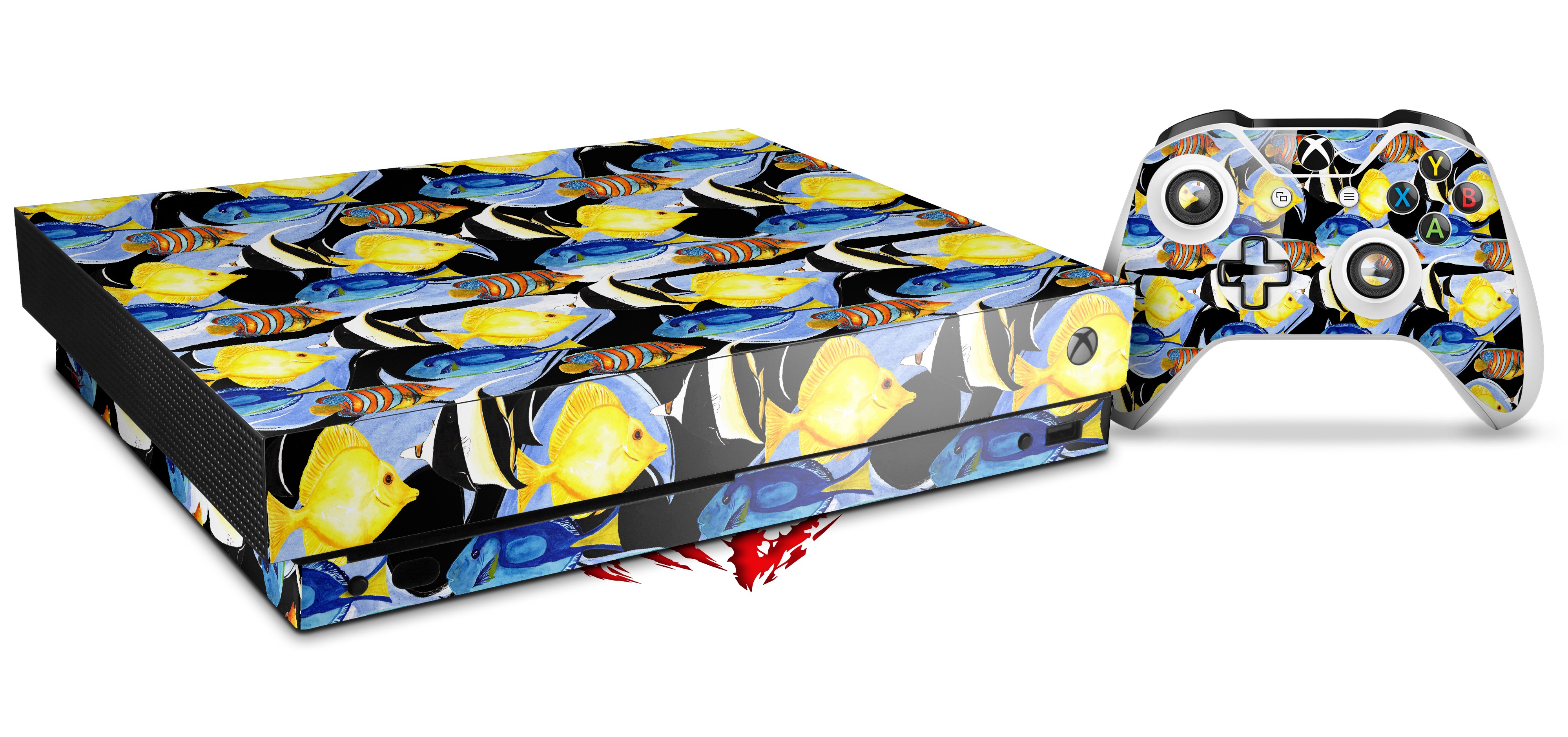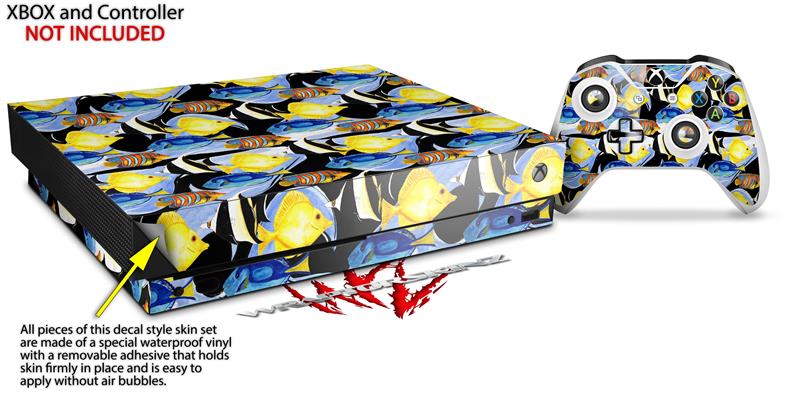 Skin Wrap for XBOX One X Console and Controller Tropical Fish 01 Black