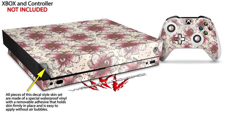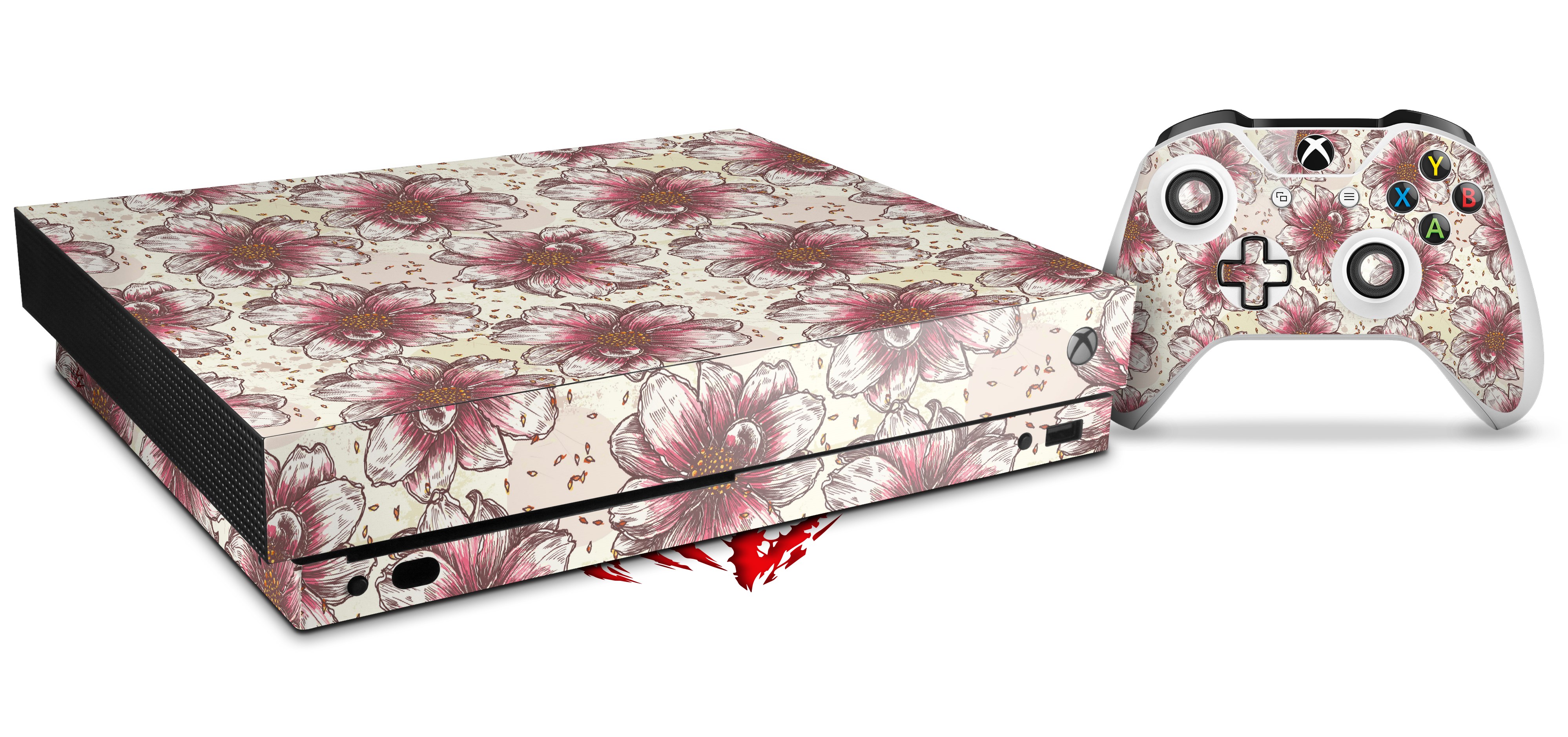 Skin Wrap for XBOX One X Console and Controller Flowers Pattern 23