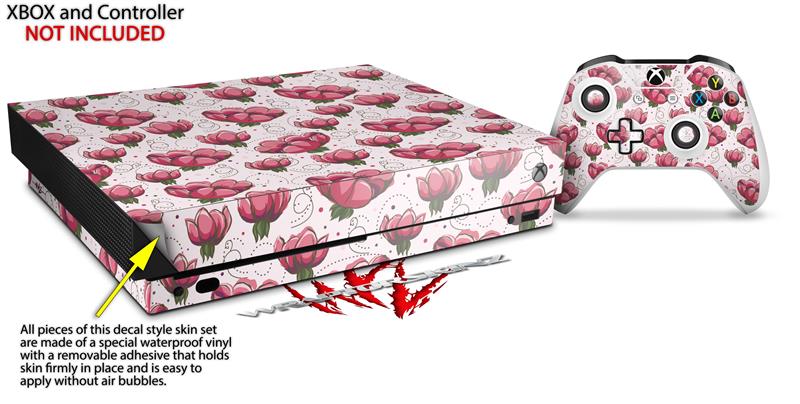 Skin Wrap for XBOX One X Console and Controller Flowers Pattern 16