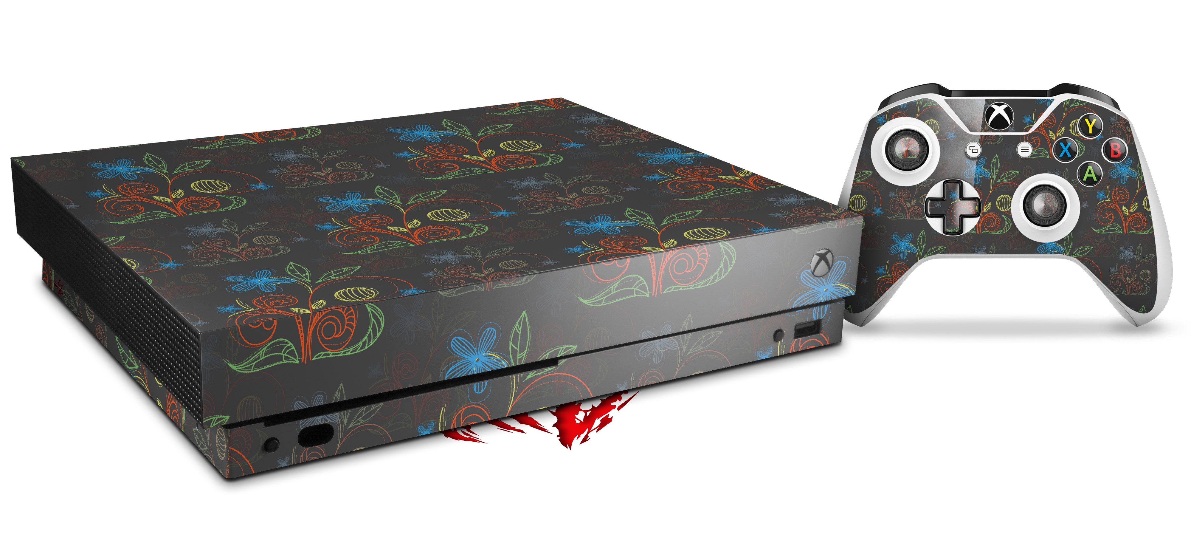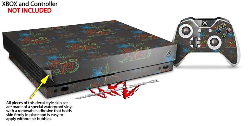 Skin Wrap for XBOX One X Console and Controller Flowers Pattern 07