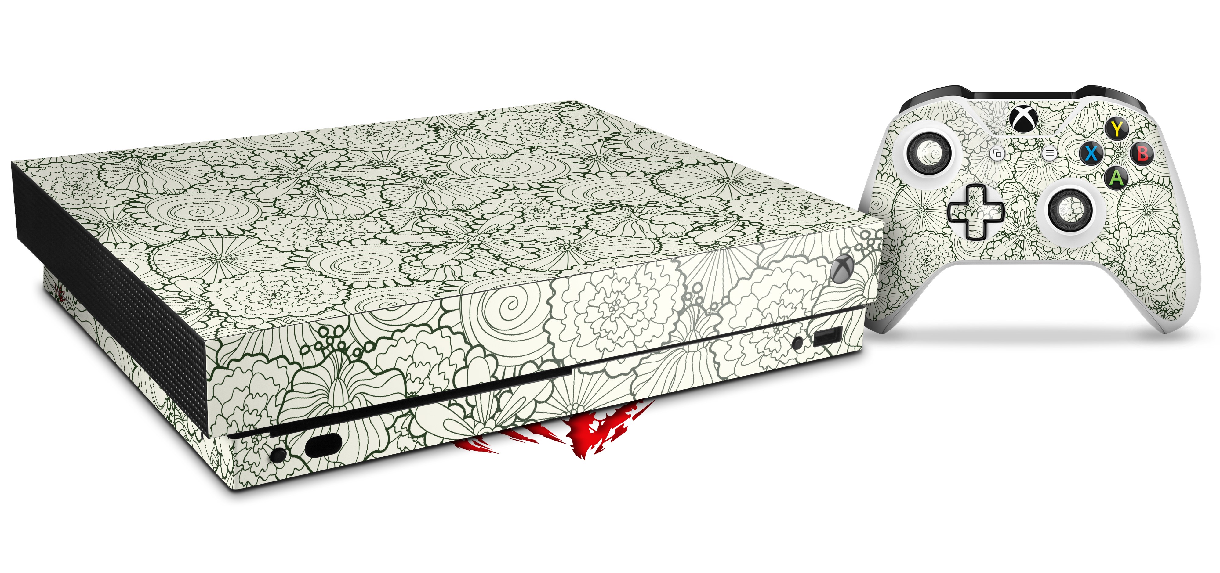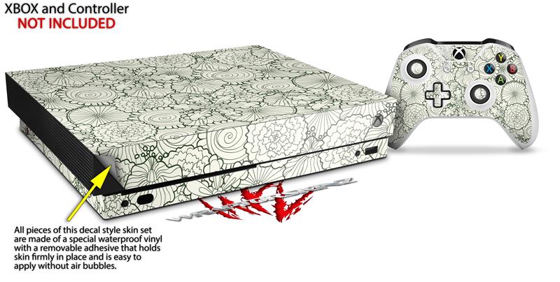 Skin Wrap for XBOX One X Console and Controller Flowers Pattern 05