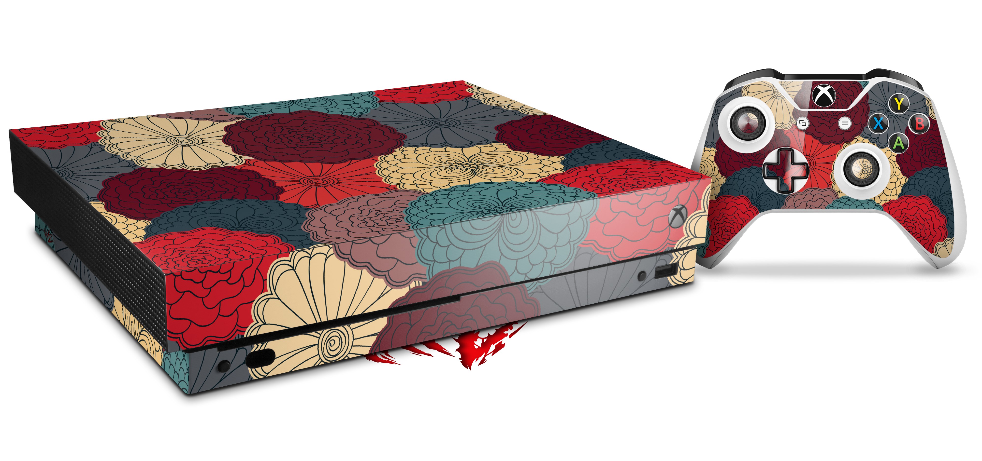 Skin Wrap for XBOX One X Console and Controller Flowers Pattern 04
