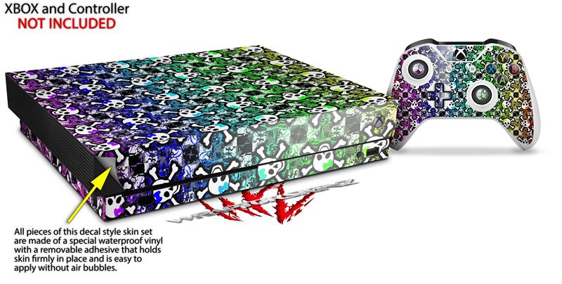 Skin Wrap for XBOX One X Console and Controller Splatter Girly Skull Rainbow