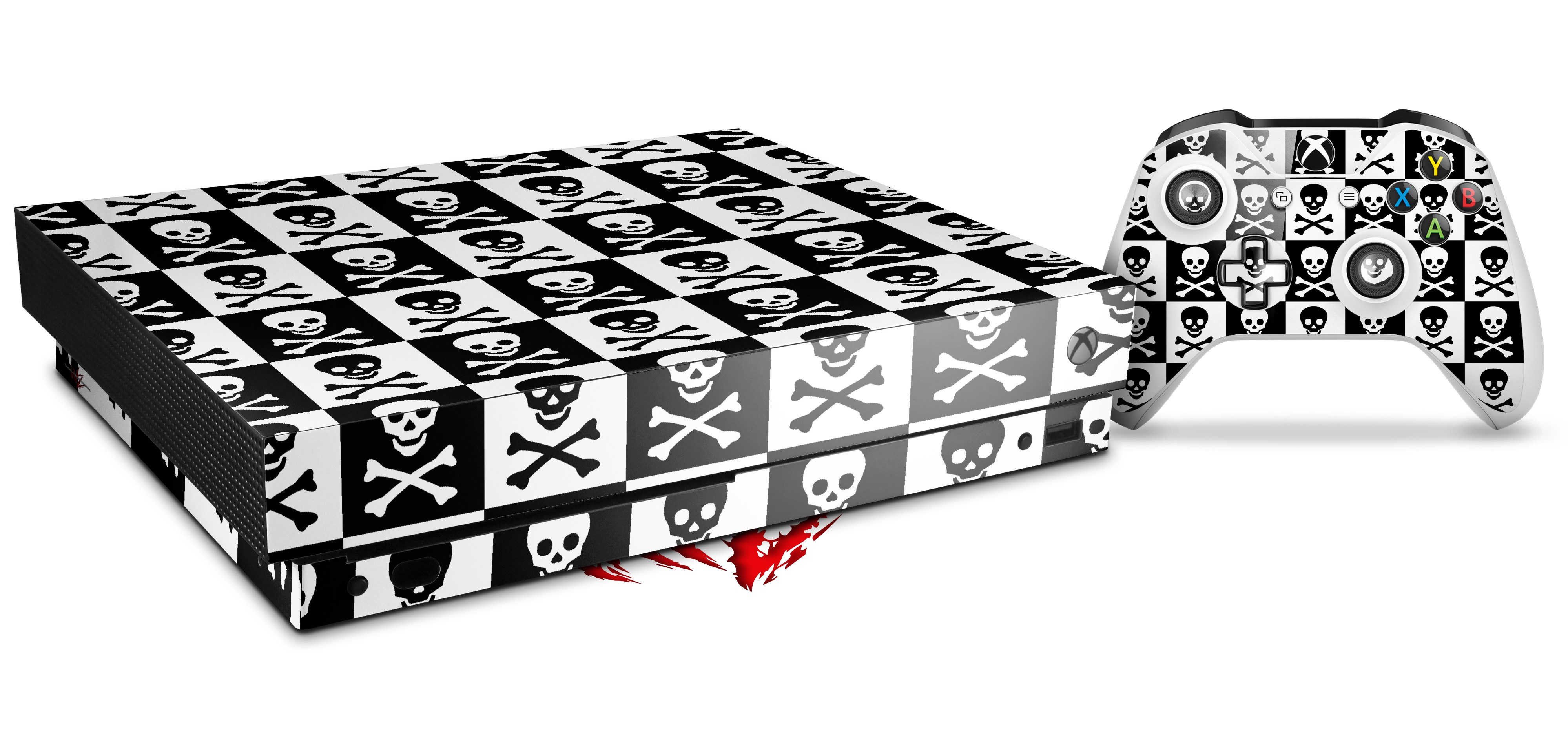 Skin Wrap for XBOX One X Console and Controller Skull Checkerboard