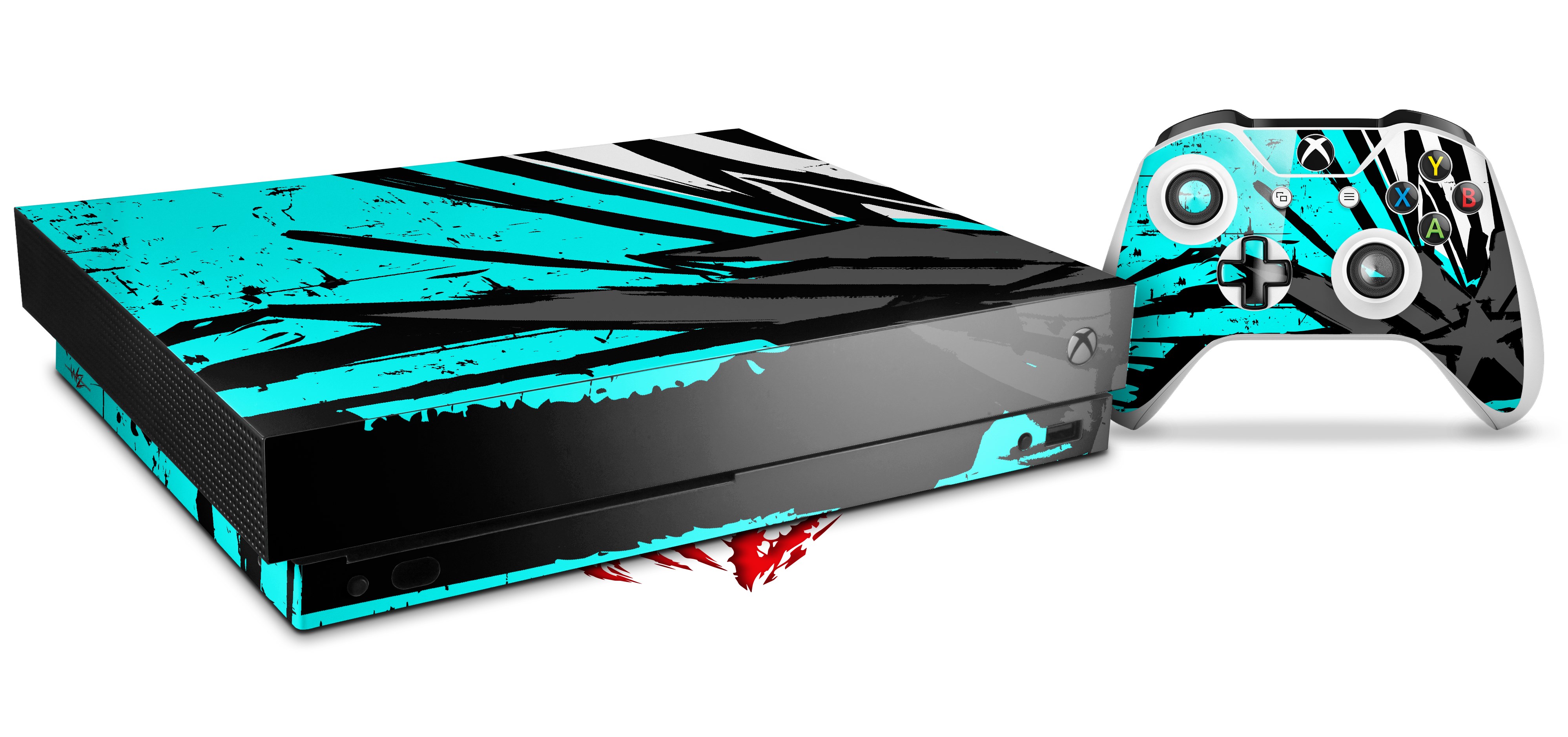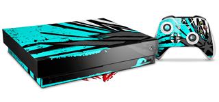 Skin Wrap for XBOX One X Console and Controller Baja 0040 Neon Teal