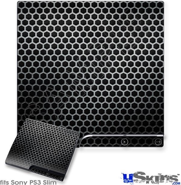 Decal Skin compatible with Sony PS3 Slim Mesh Metal Hex 02