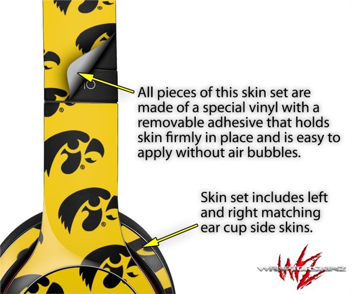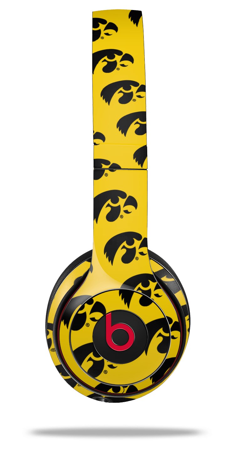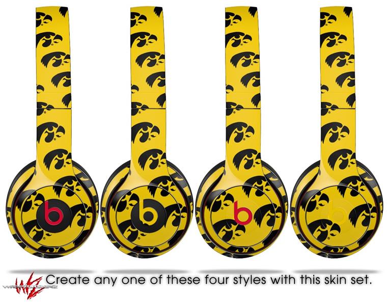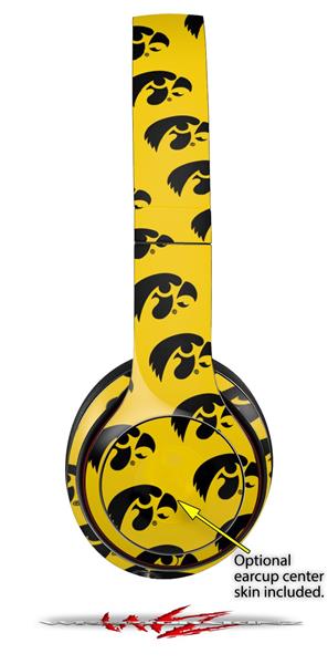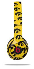 WraptorSkinz Skin Decal Wrap compatible with Beats Solo 2 and Solo 3 Wireless Headphones Iowa Hawkeyes Tigerhawk Tiled 06 Black on Gold (HEADPHONES NOT INCLUDED)