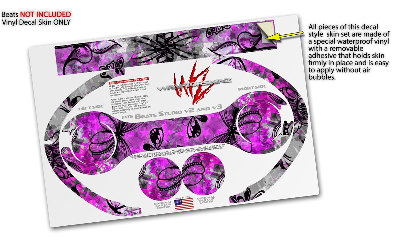 WraptorSkinz Skin Decal Wrap compatible with Beats Studio 2 and 3 Wired and Wireless Headphones Butterfly Graffiti Skin Only (HEADPHONES NOT INCLUDED)