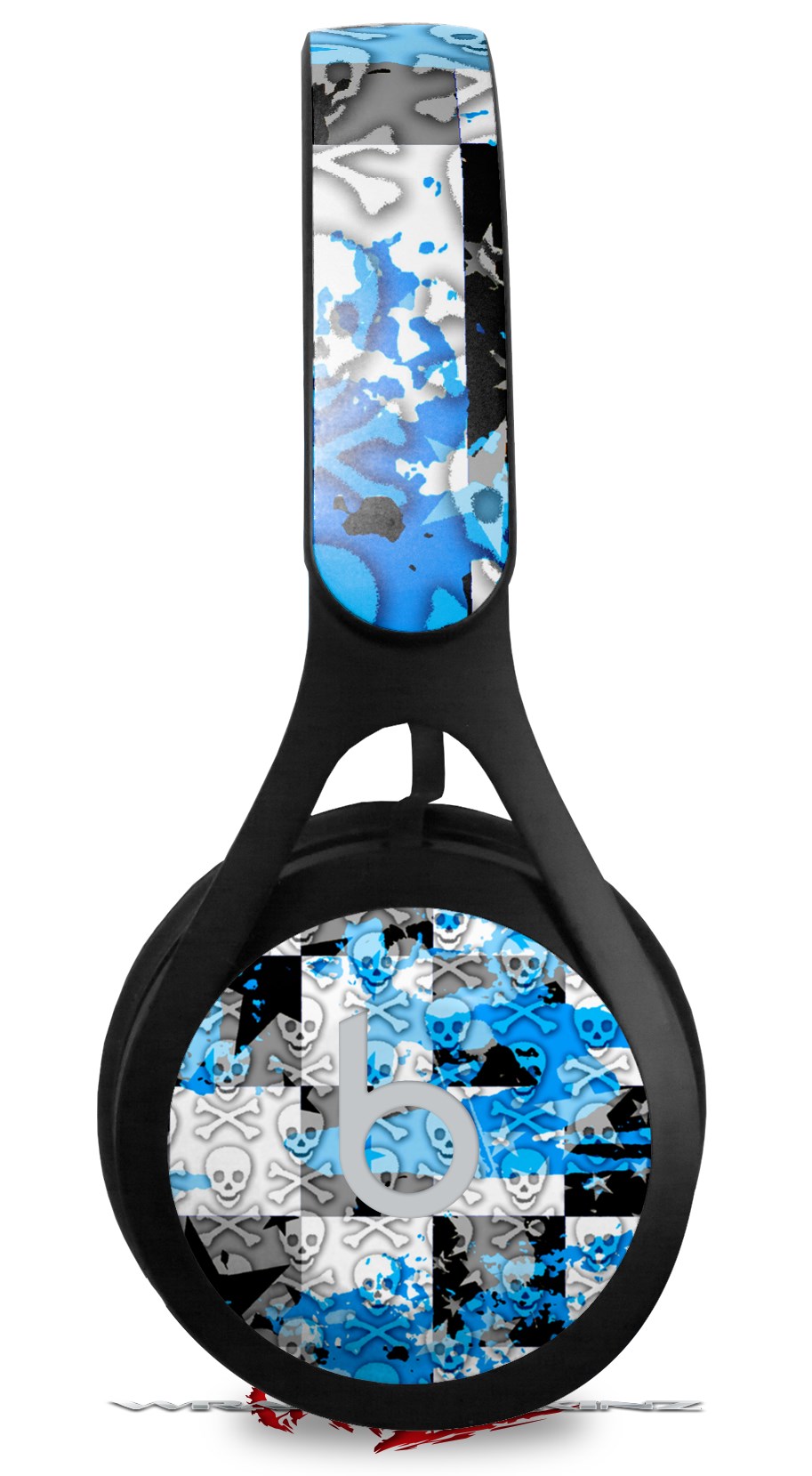 WraptorSkinz Skin Decal Wrap compatible with Beats EP Headphones Checker Skull Splatter Blue Skin Only HEADPHONES NOT INCLUDED