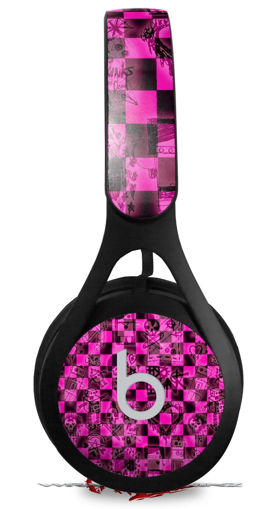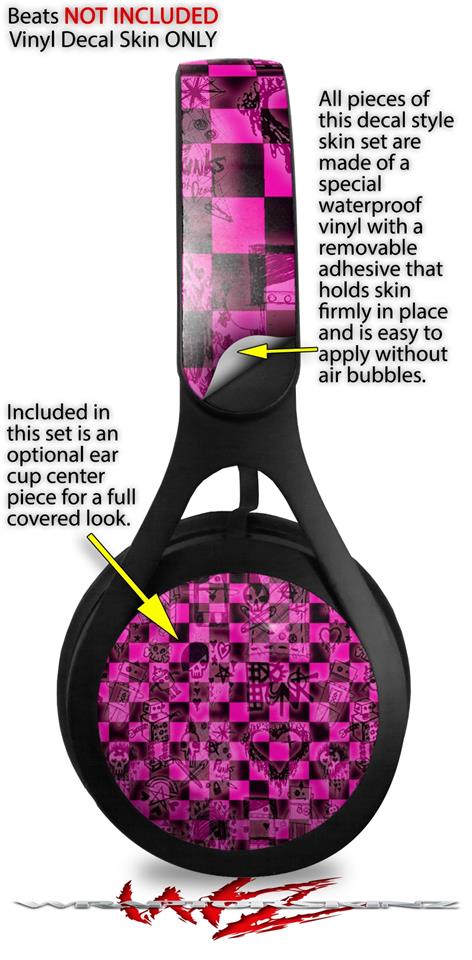 WraptorSkinz Skin Decal Wrap compatible with Beats EP Headphones Pink Checkerboard Sketches Skin Only HEADPHONES NOT INCLUDED