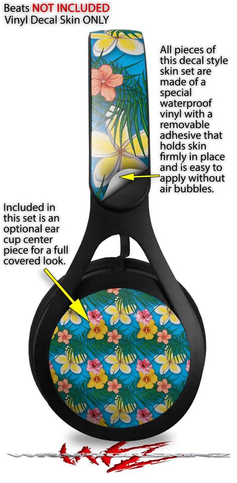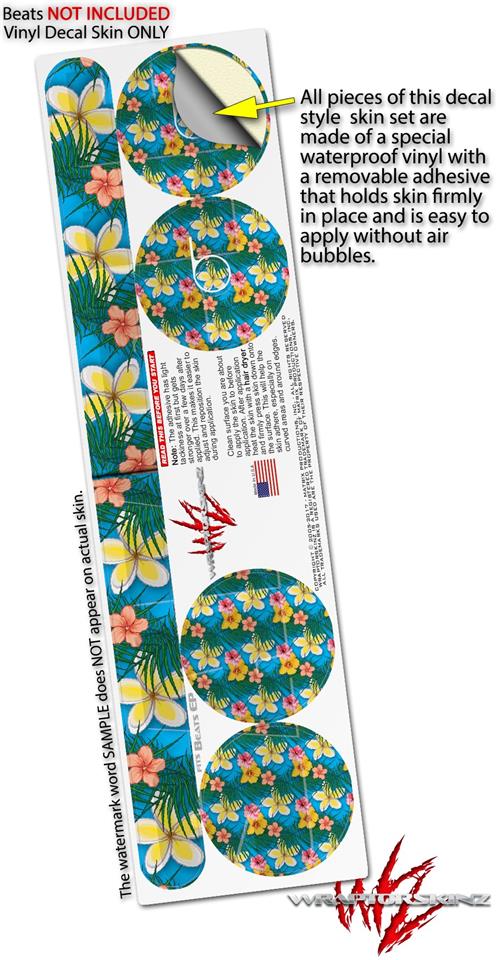 WraptorSkinz Skin Decal Wrap compatible with Beats EP Headphones Beach Flowers 02 Blue Medium Skin Only HEADPHONES NOT INCLUDED