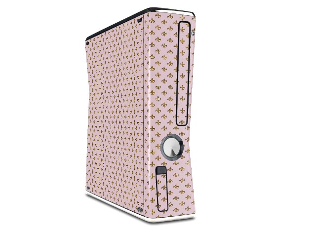 Gold Fleur-de-lis Decal Style Skin for XBOX 360 Slim Vertical