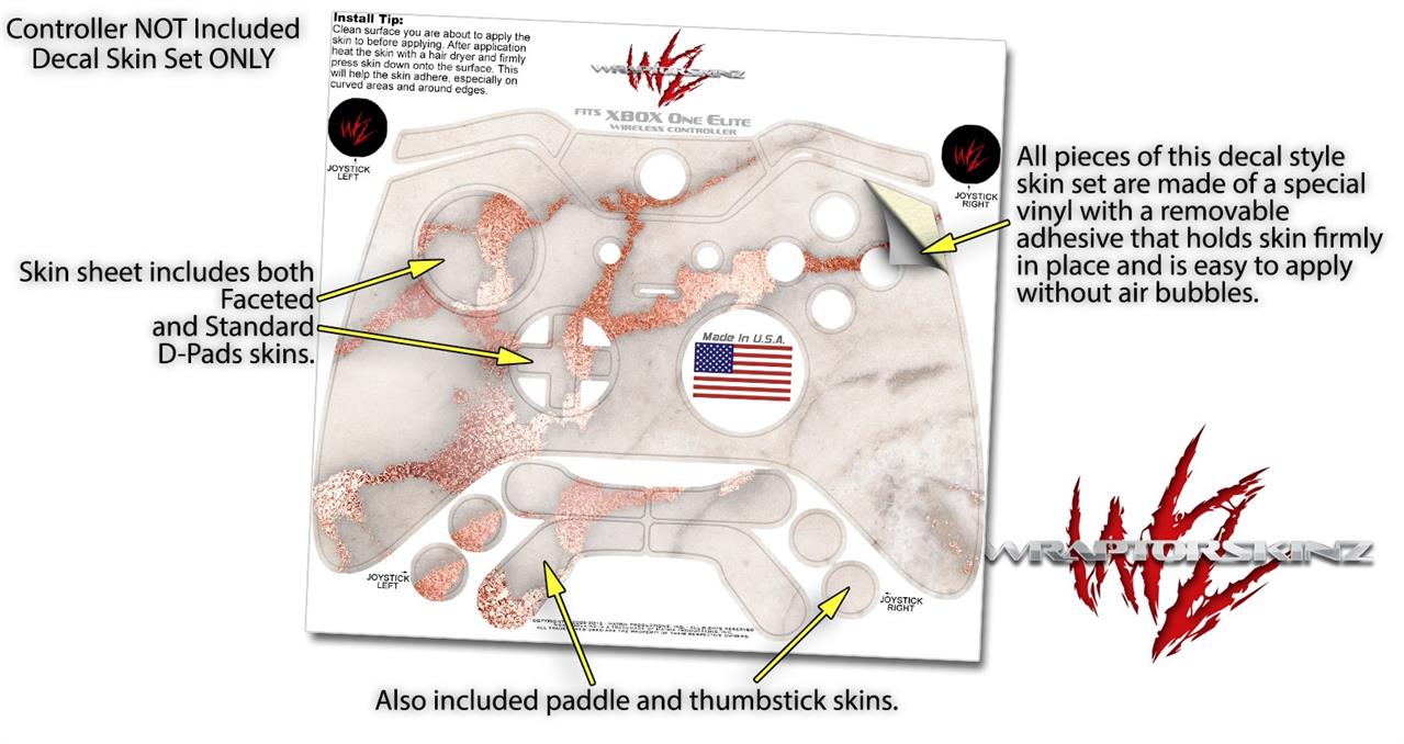 Rose Gold Gilded Marble - Decal Style Skin fits Microsoft XBOX One ELITE Wireless Controller