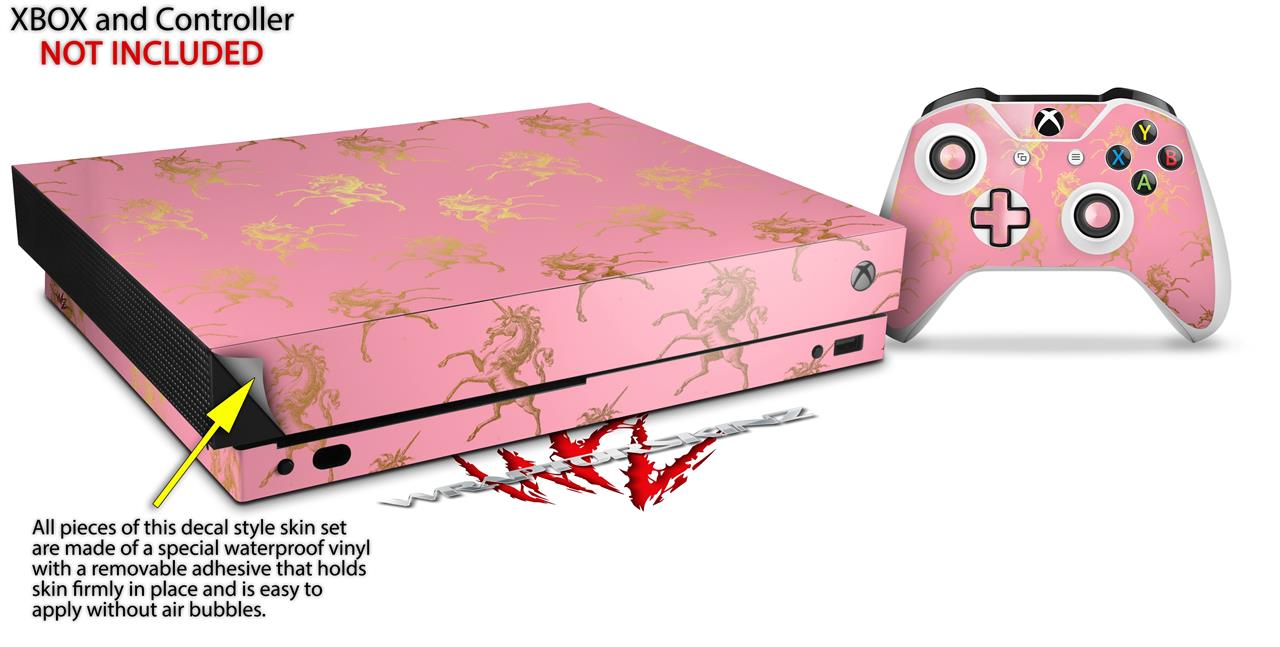 Skin Wrap for XBOX One X Console and Controller Golden Unicorn
