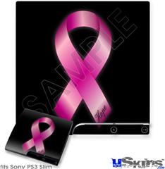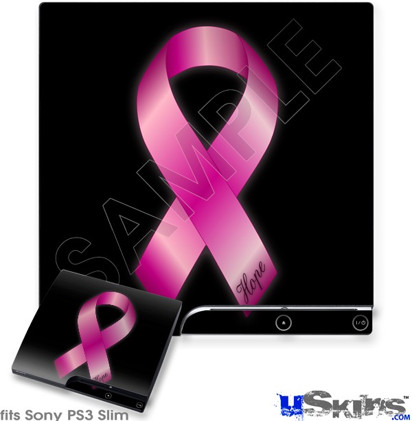 Decal Skin compatible with Sony PS3 Slim Hope Breast Cancer Pink Ribbon on Black