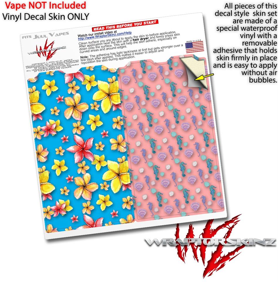 Skin Decal Wrap 2 Pack for Juul Vapes Beach Flowers Blue Medium JUUL NOT INCLUDED