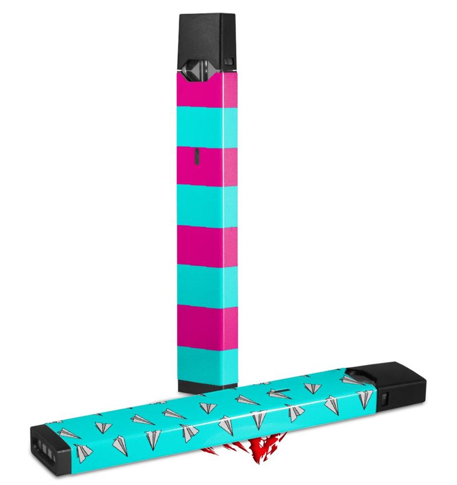 Skin Decal Wrap 2 Pack for Juul Vapes Psycho Stripes Neon Teal and Hot Pink JUUL NOT INCLUDED