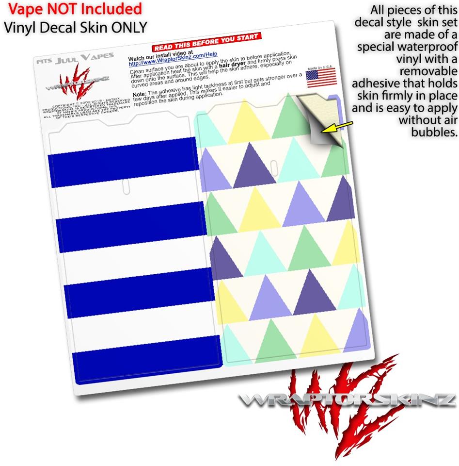 WraptorSkinz® skin wraps are printed using superb photo quality designs and vibrant colors printed with special fade resistant inks that last even in direct sun for years. WraptorSkinz are a composite of two layers of commercial grade materials. The bottom layer is a soft, flexible vinyl with a special removable adhesive that is easily positioned, applied without air bubbles. Next we print the bottom layer with UV protected, fade resistant inks that deliver superb photo quality designs in vibrant colors. Finally we bond a professional grade laminate over the entire skin adding a glossy protective finish. This product is not affiliated with or endorsed by the Juul brand.