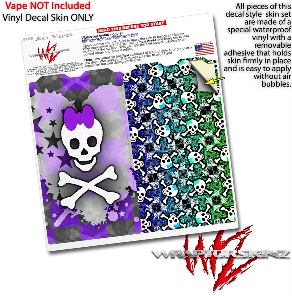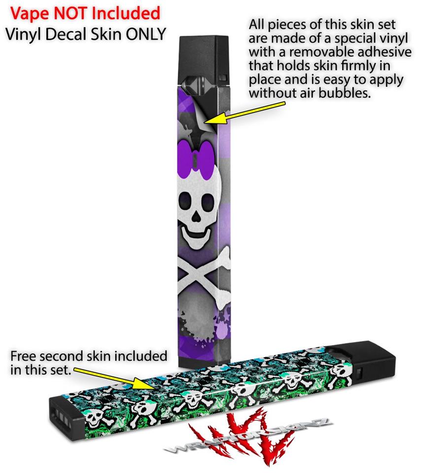Skin Decal Wrap 2 Pack for Juul Vapes Princess Skull Heart Purple JUUL NOT INCLUDED