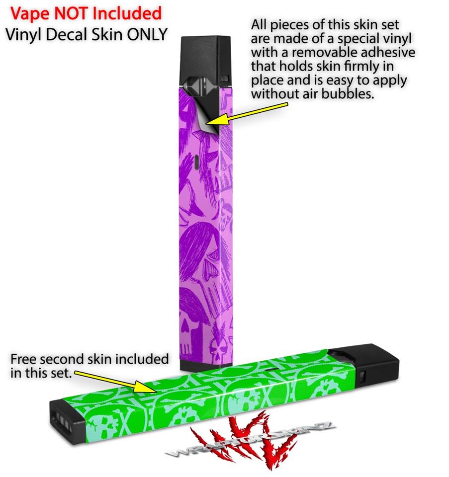 Skin Decal Wrap 2 Pack for Juul Vapes Skull Sketches Purple JUUL NOT INCLUDED