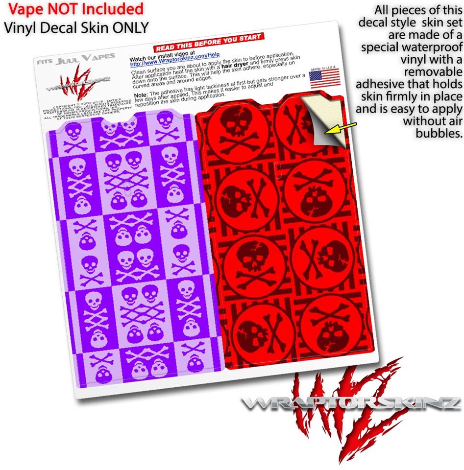 Skin Decal Wrap 2 Pack for Juul Vapes Skull And Crossbones Pattern Purple JUUL NOT INCLUDED