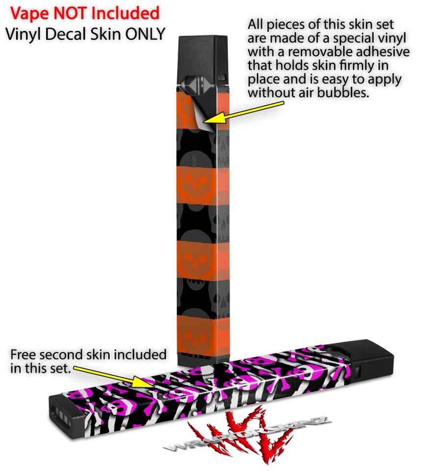 Skin Decal Wrap 2 Pack for Juul Vapes Skull Stripes Orange JUUL NOT INCLUDED
