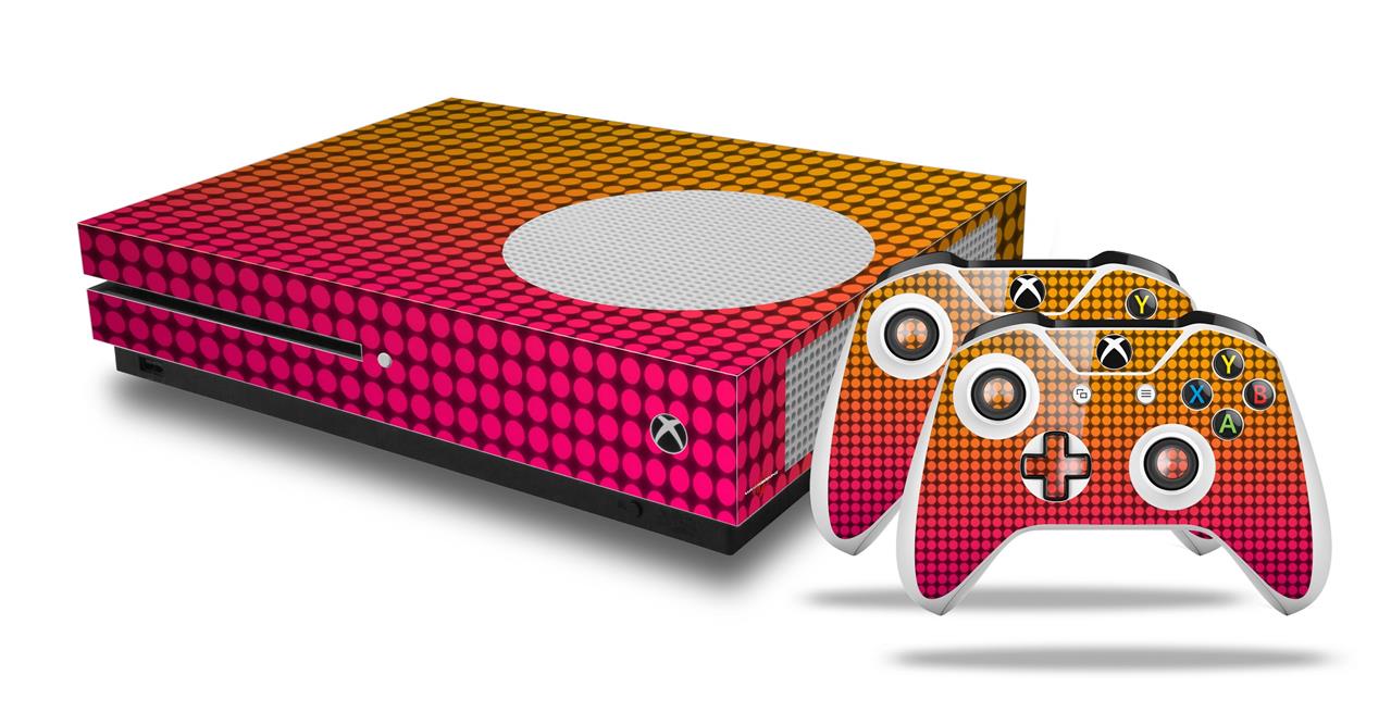 WraptorSkinz Decal Skin Wrap Set works with 2016 and newer XBOX One S Console and 2 Controllers Faded Dots Hot Pink Orange
