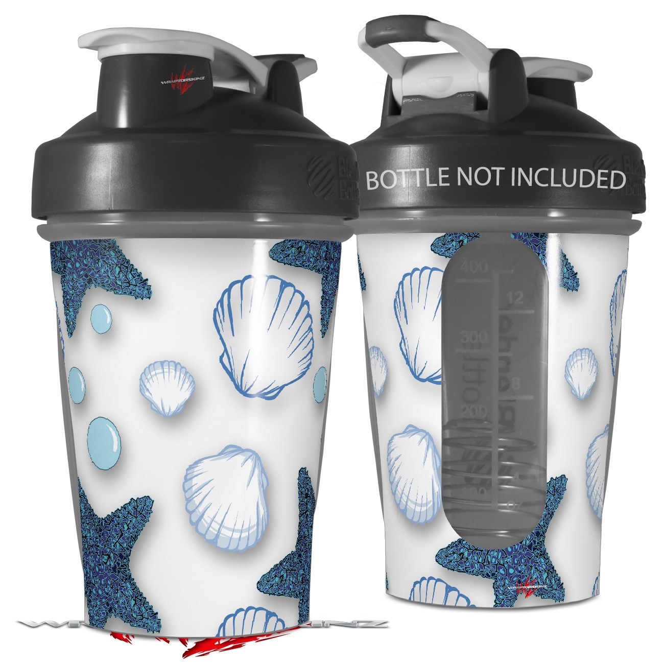 Decal Style Skin Wrap works with Blender Bottle 20oz Starfish and Sea Shells White (BOTTLE NOT INCLUDED)
