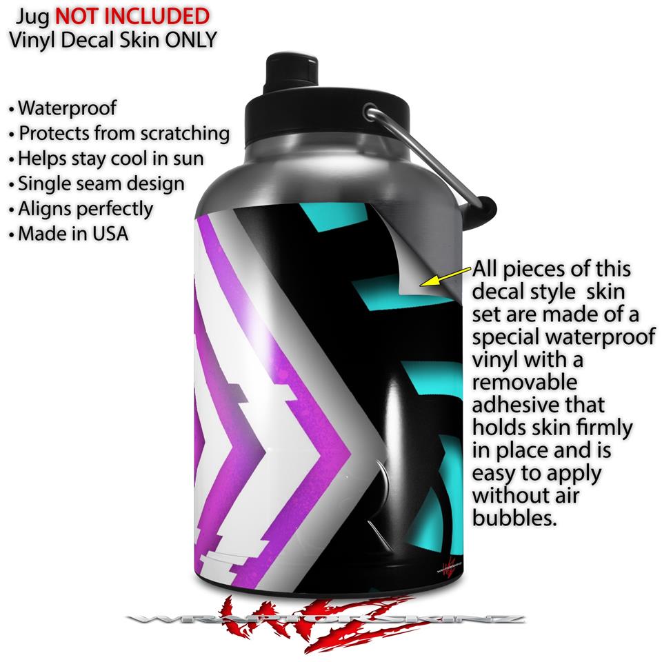 Skin Decal Wrap for 2017 RTIC One Gallon Jug Black Waves Neon Teal Hot Pink (Jug NOT INCLUDED) by WraptorSkinz
